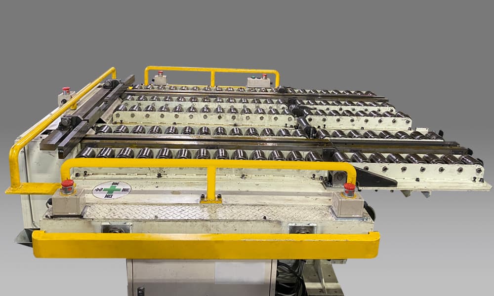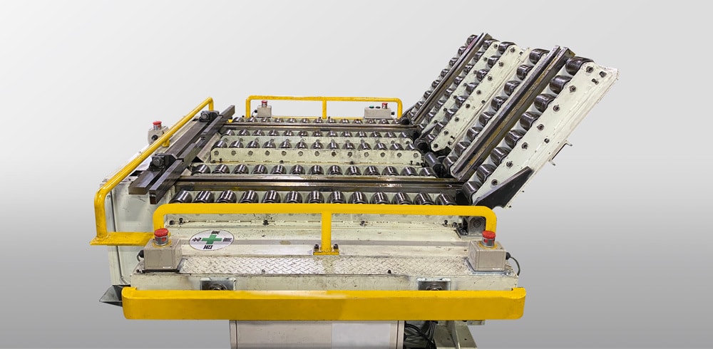 金型チェンジャー 弊社の金型チェンジャーは、既存のプレスにも設置可能な完全オーダーメイドが特徴です。金型チェンジャーは危険作業時の安全性、作業効率を高め、作業者への負担を軽減します。 金型乗り移り電動アームの動き 金型は3t未満まで対応。自走式です。 金型チェンジャー ムービー